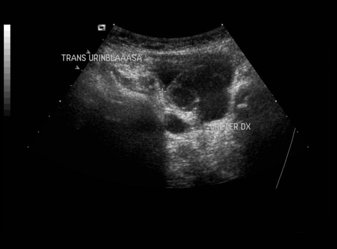 Long höger njure. Nyfödd med dubbla njurbäcken med dilatation av övre systemet.. se bild 9h