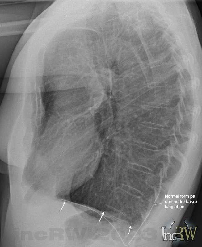 Man kan missa vätska i lungsäcken som visuellt normalt ger mer rundad lungspets men kan se ut som utplanad diafragma på bilderna om en konventionell röntgen av lungorna enbart görs stående.